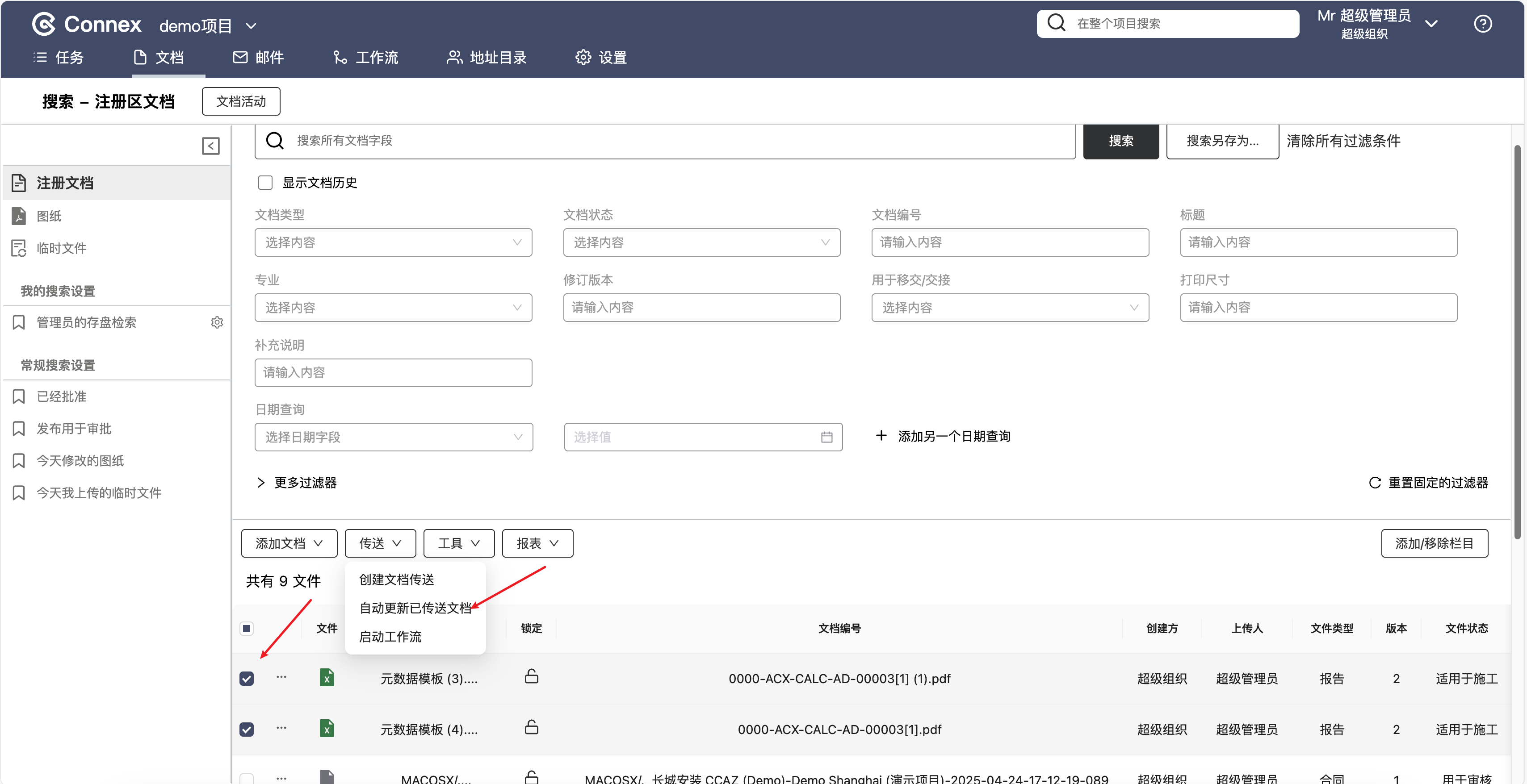 传送成功后,您需要对这些文档进行更新。