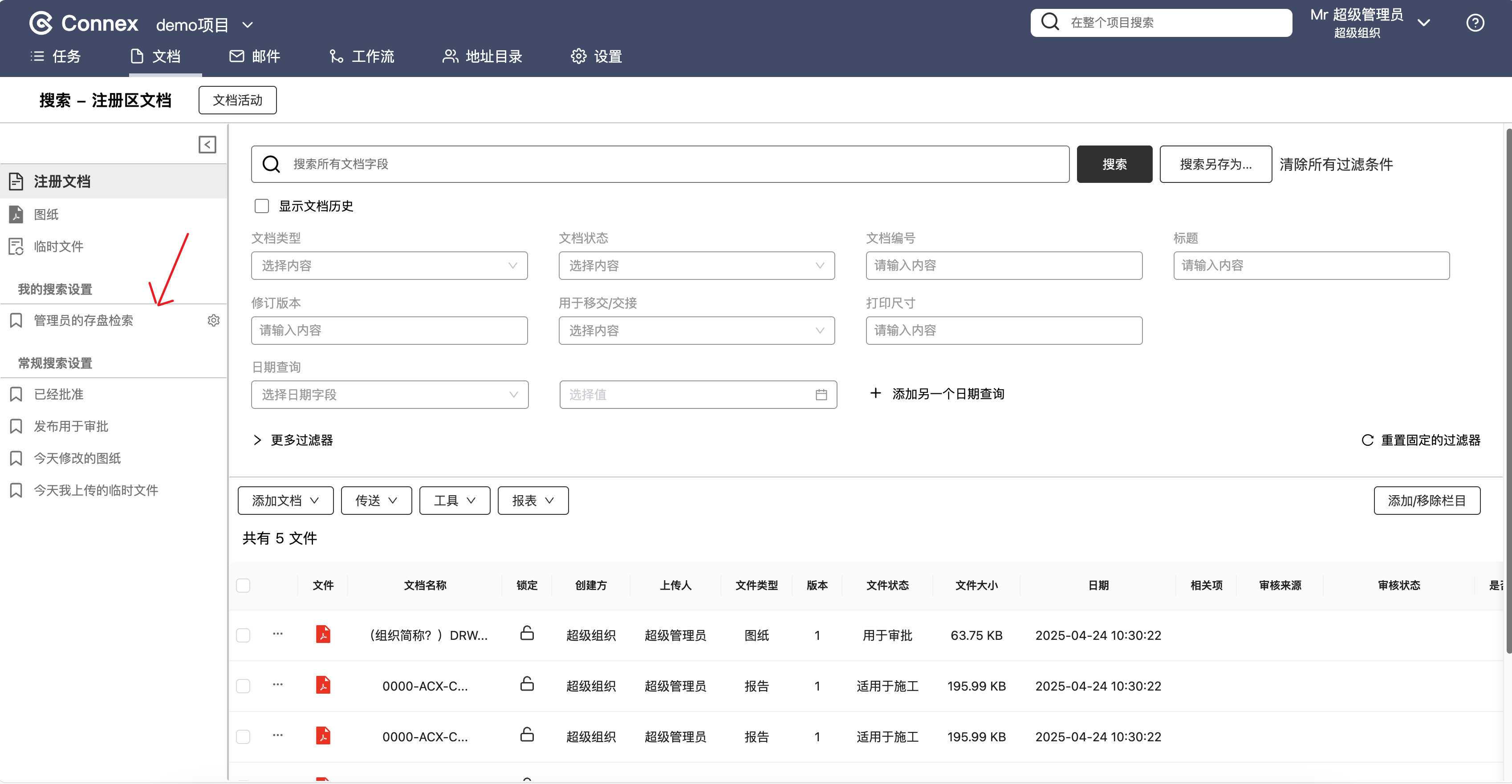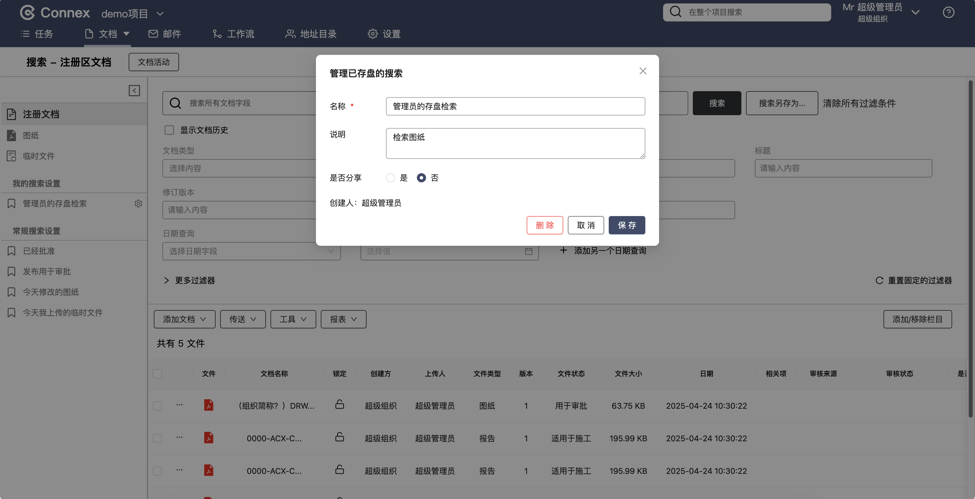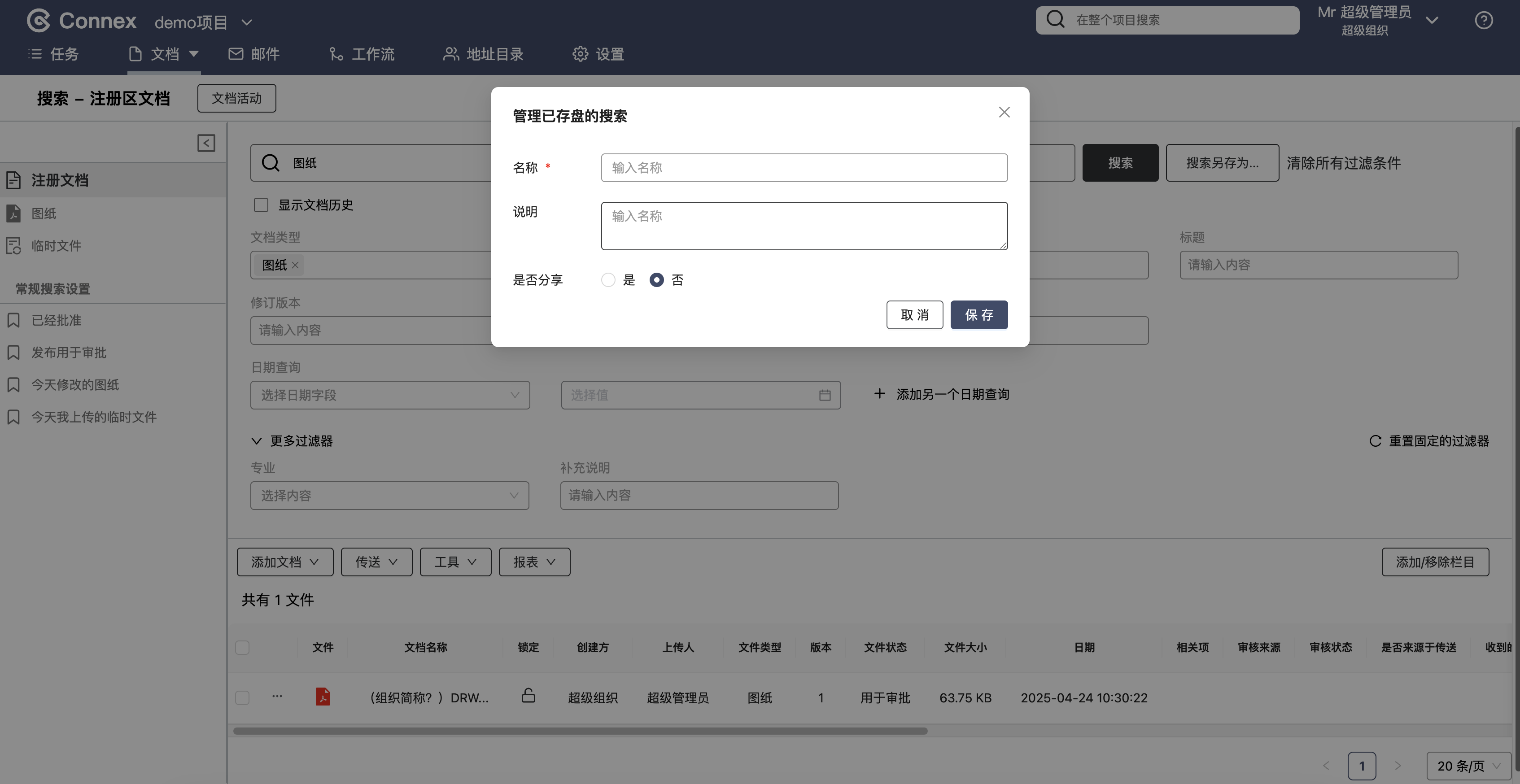 若要共享您自己的已存盘的搜索设置,您的账号需要具备以下权限
