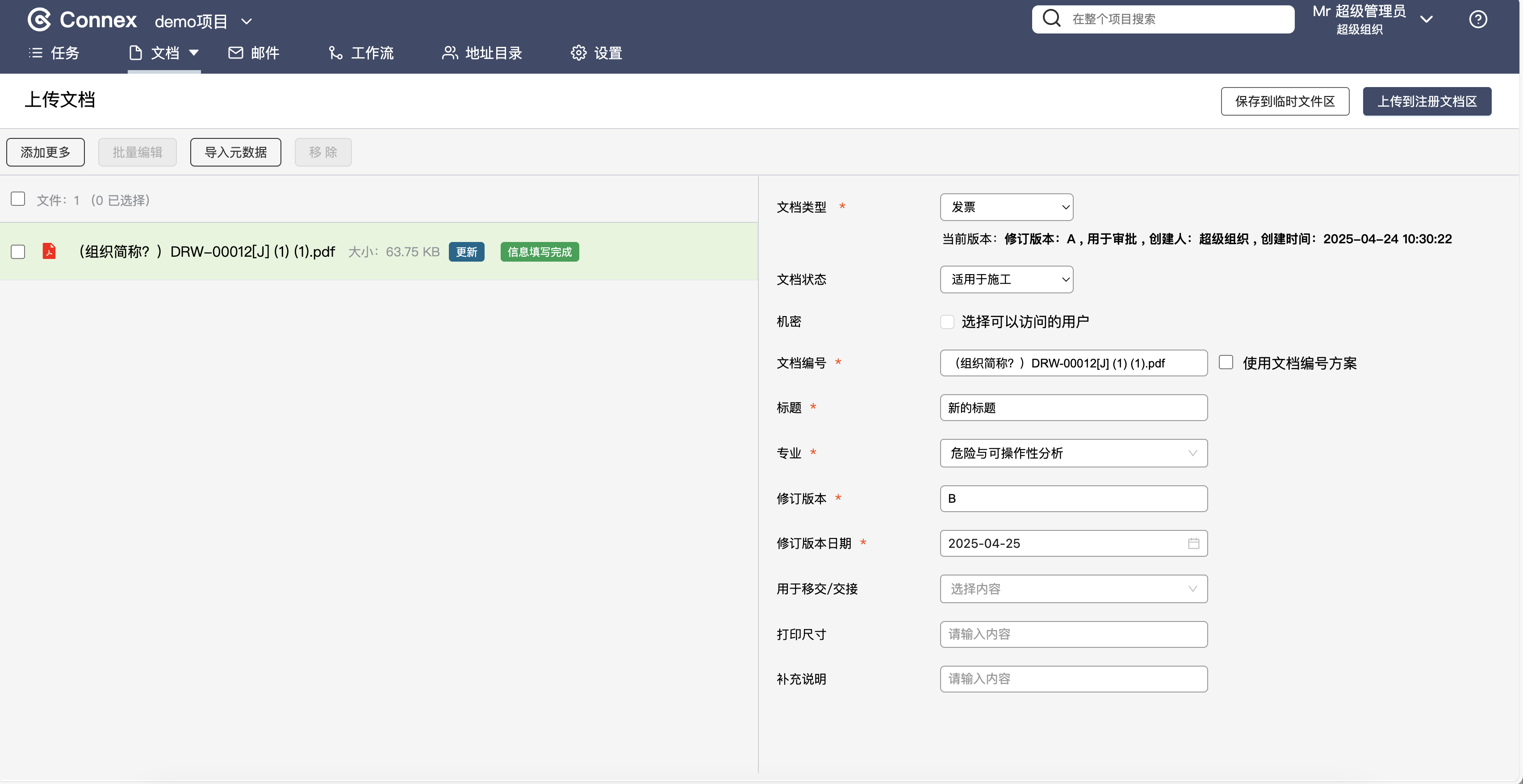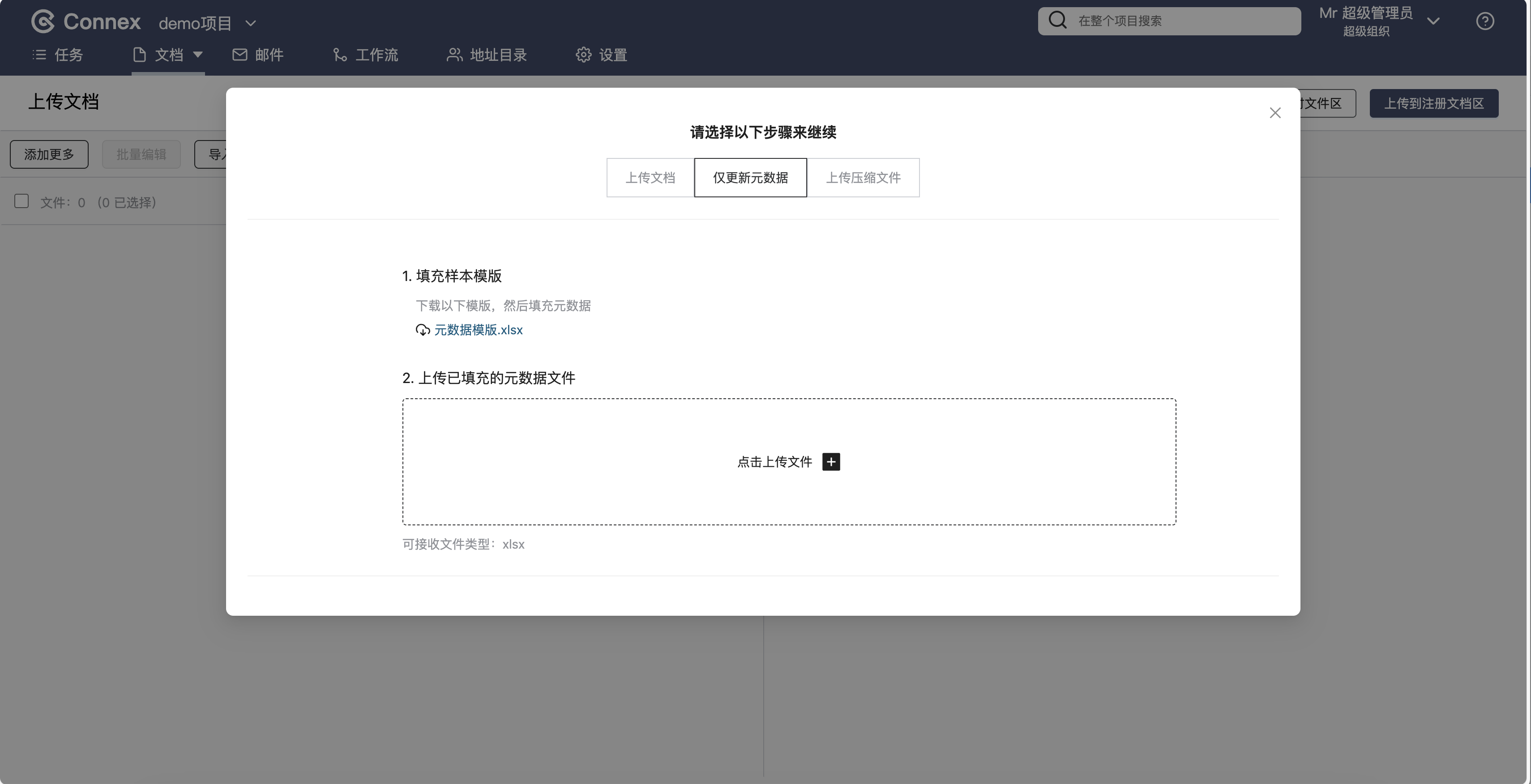 3. 通过仅更新元数据方式上传的文档,只会进行版本和文档信息的更新,并不是上传一个新的文档。
