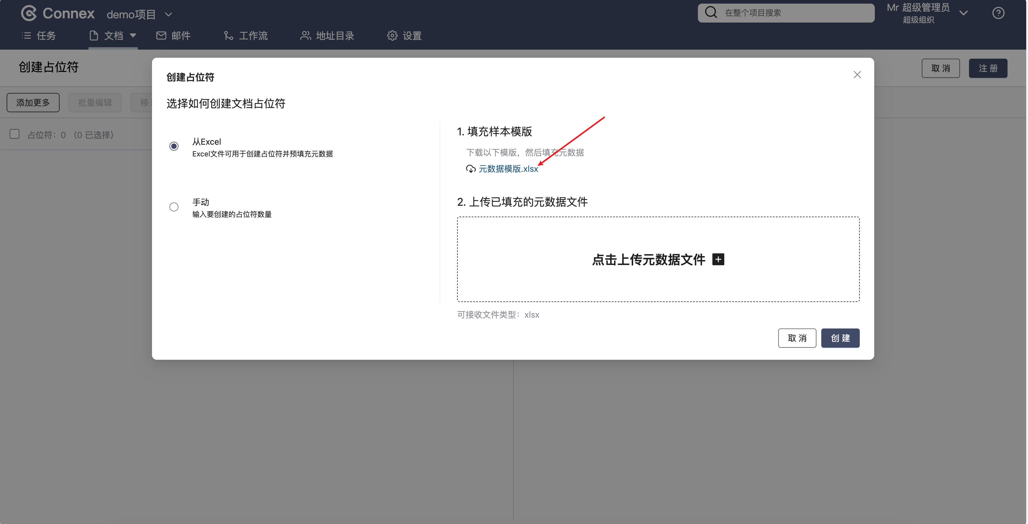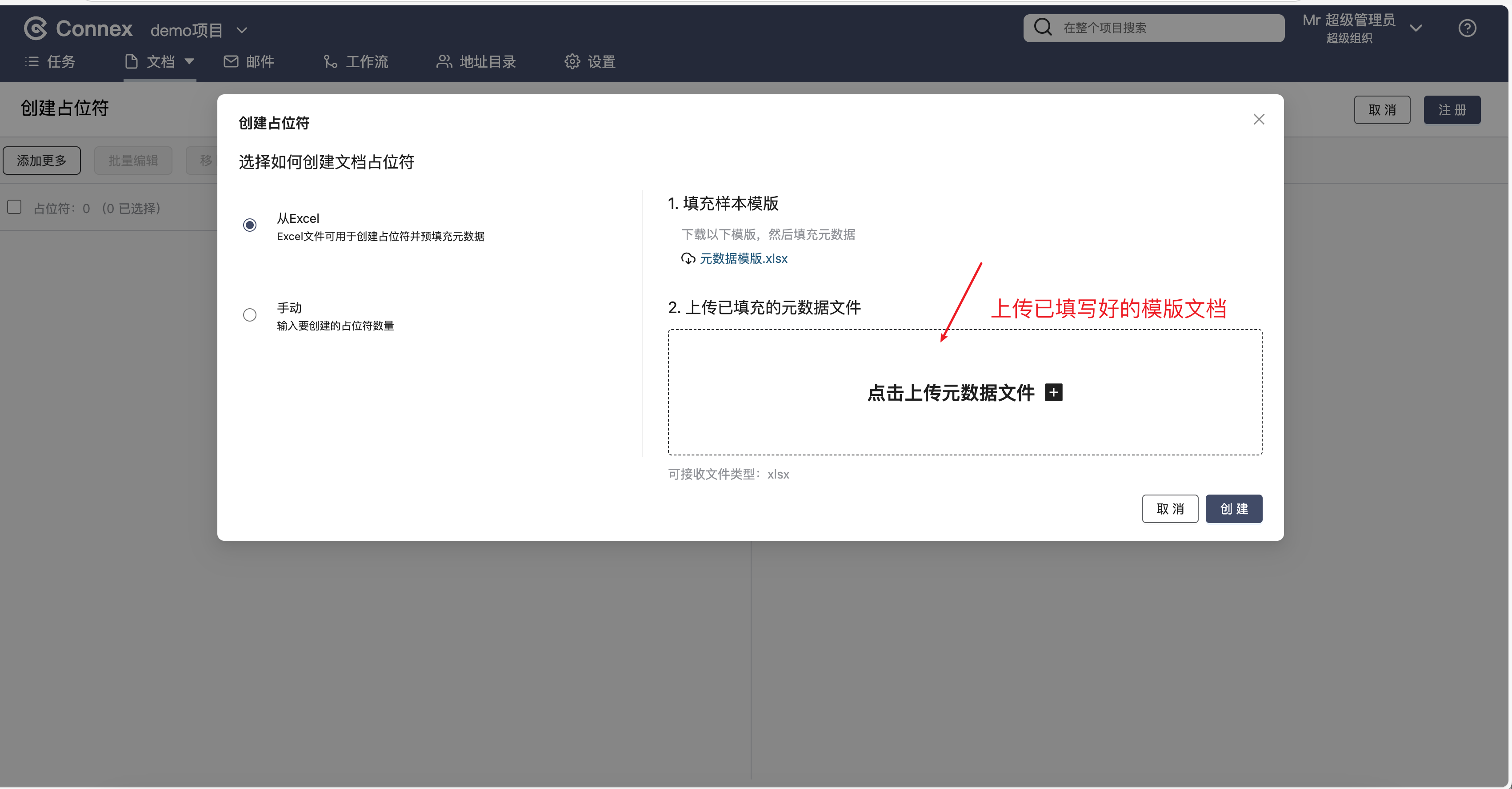 通过元数据上传文档占位符