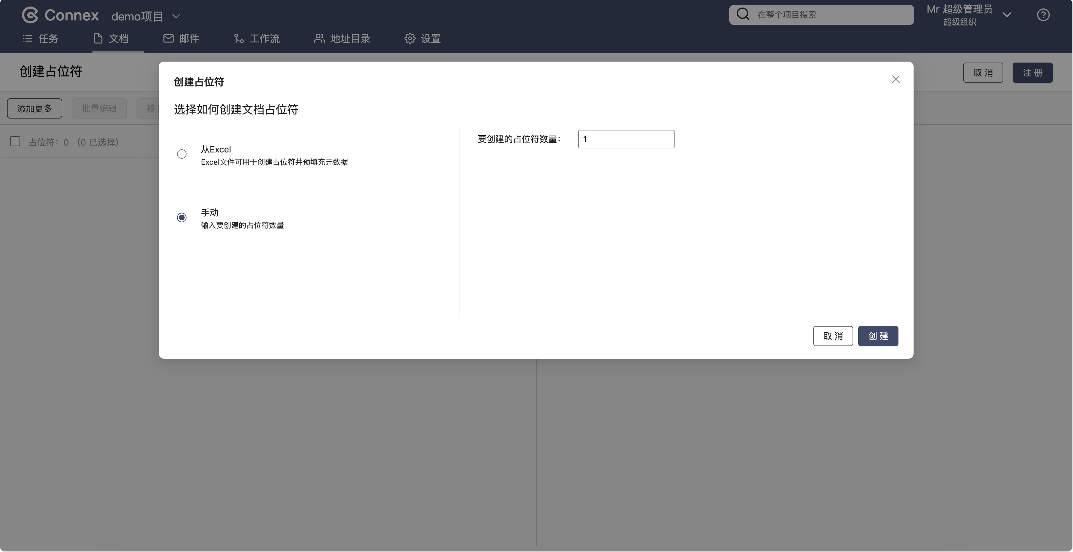 通过手动输入来进行上传文档占位符