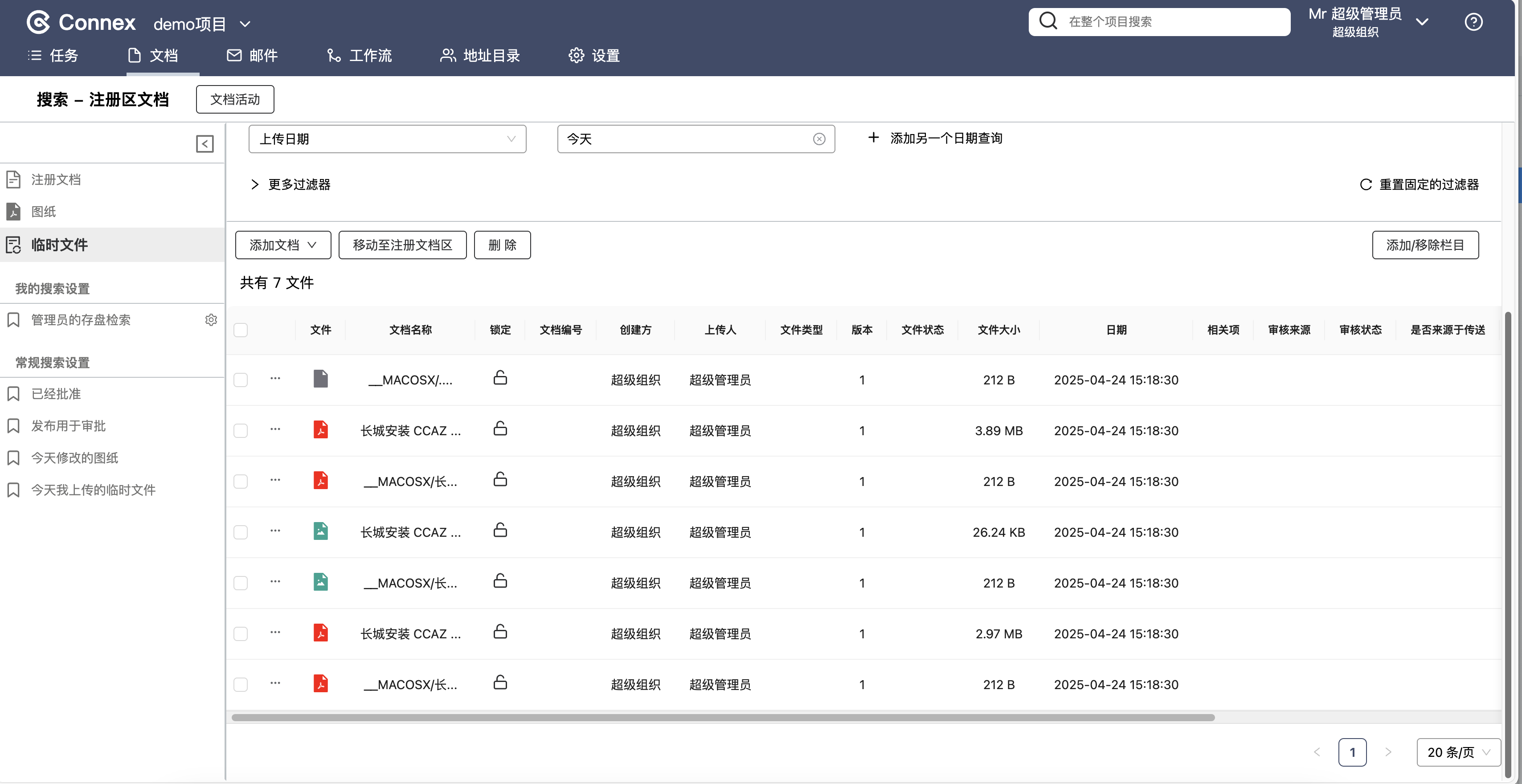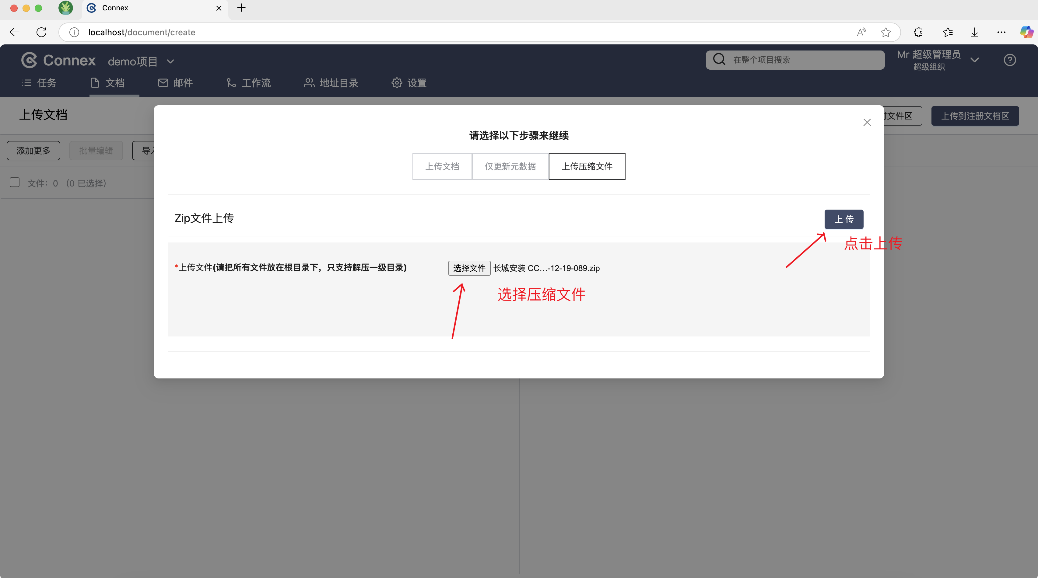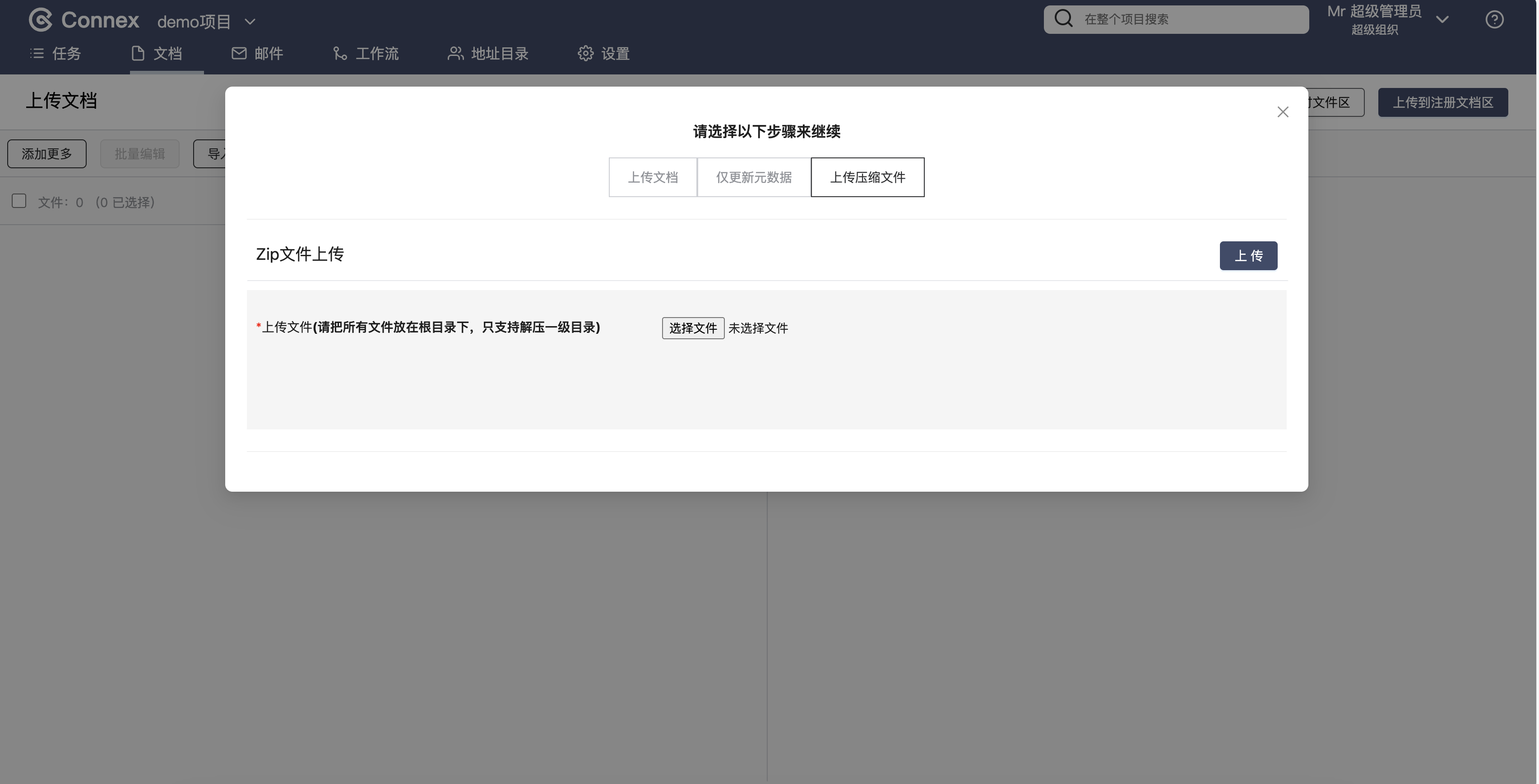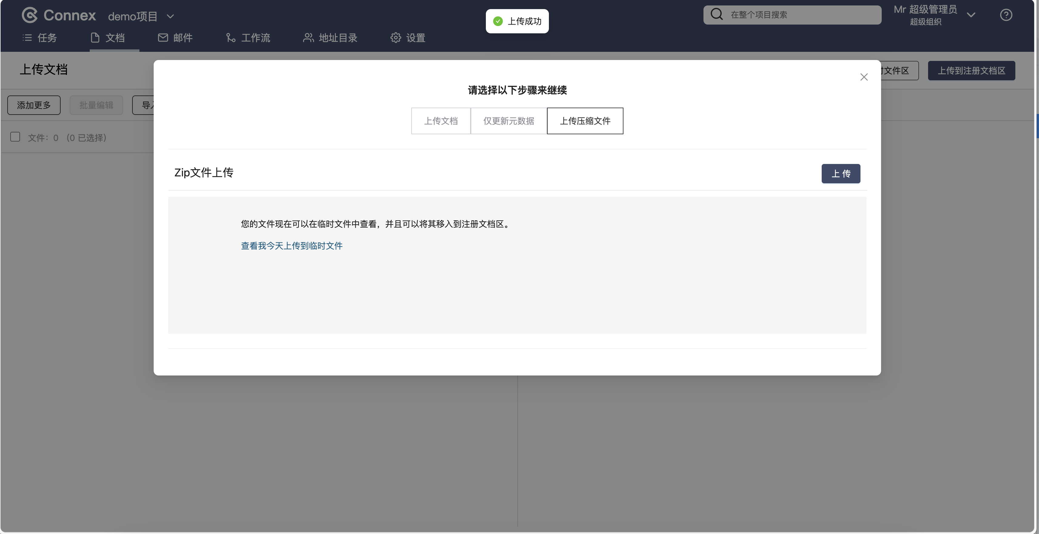 在Connex的文档模块中上传文档,您的账号需要拥有以下权限: