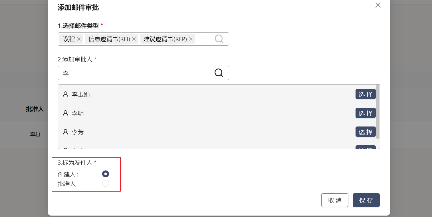 - 通过在 添加审批人 字段中键入审批者的姓名。