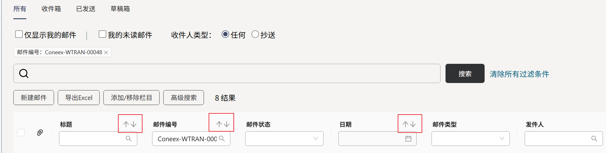 标题可按日期顺序对结果进行排序。再次单击它以按相反的日期顺序对它们进行排序。 当前 排序结果的列 旁边有一个黑色箭头。箭头的方向反映了结果的排序顺序。