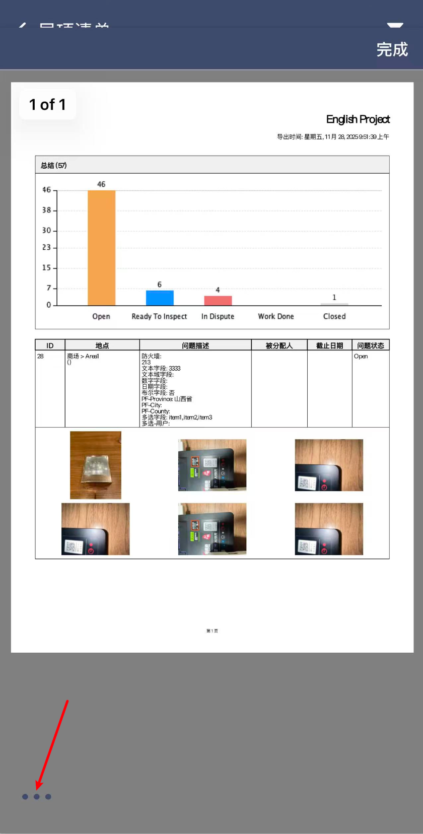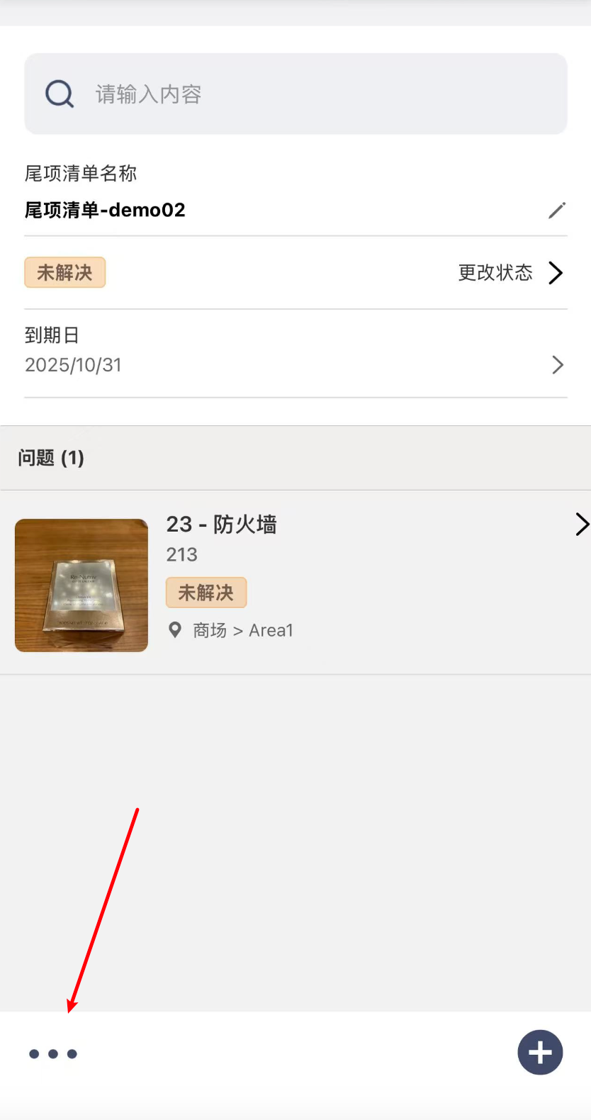 - 进入尾项清单详情页,点击页面左下角的菜单按钮。