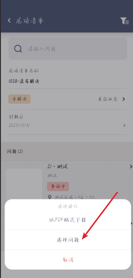 - 进入尾项清单模块首页在尾项清单模块的首页,会展示您的组织当前创建的尾项清单列表。