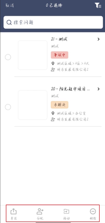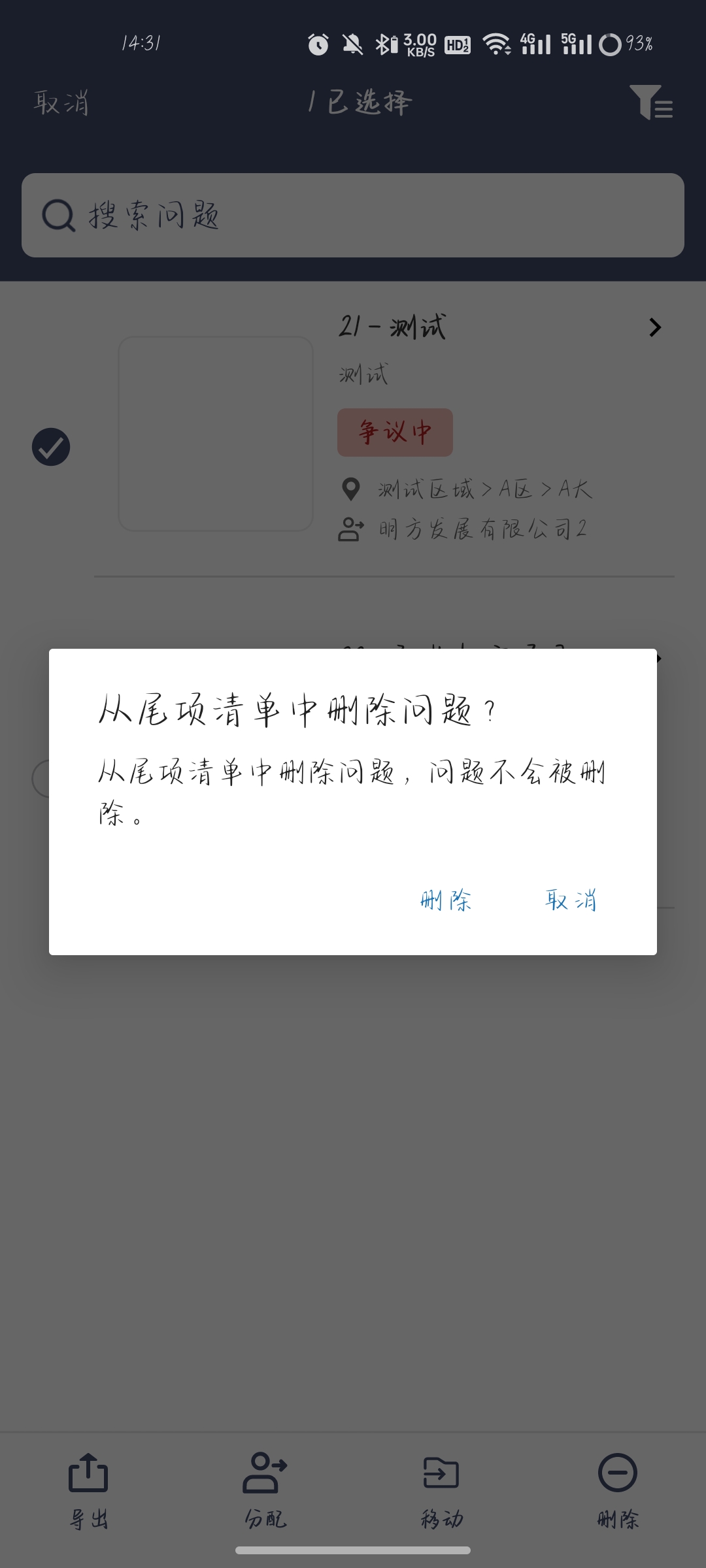 - 选中需要移动到其他尾项清单的问题项,点击移动。