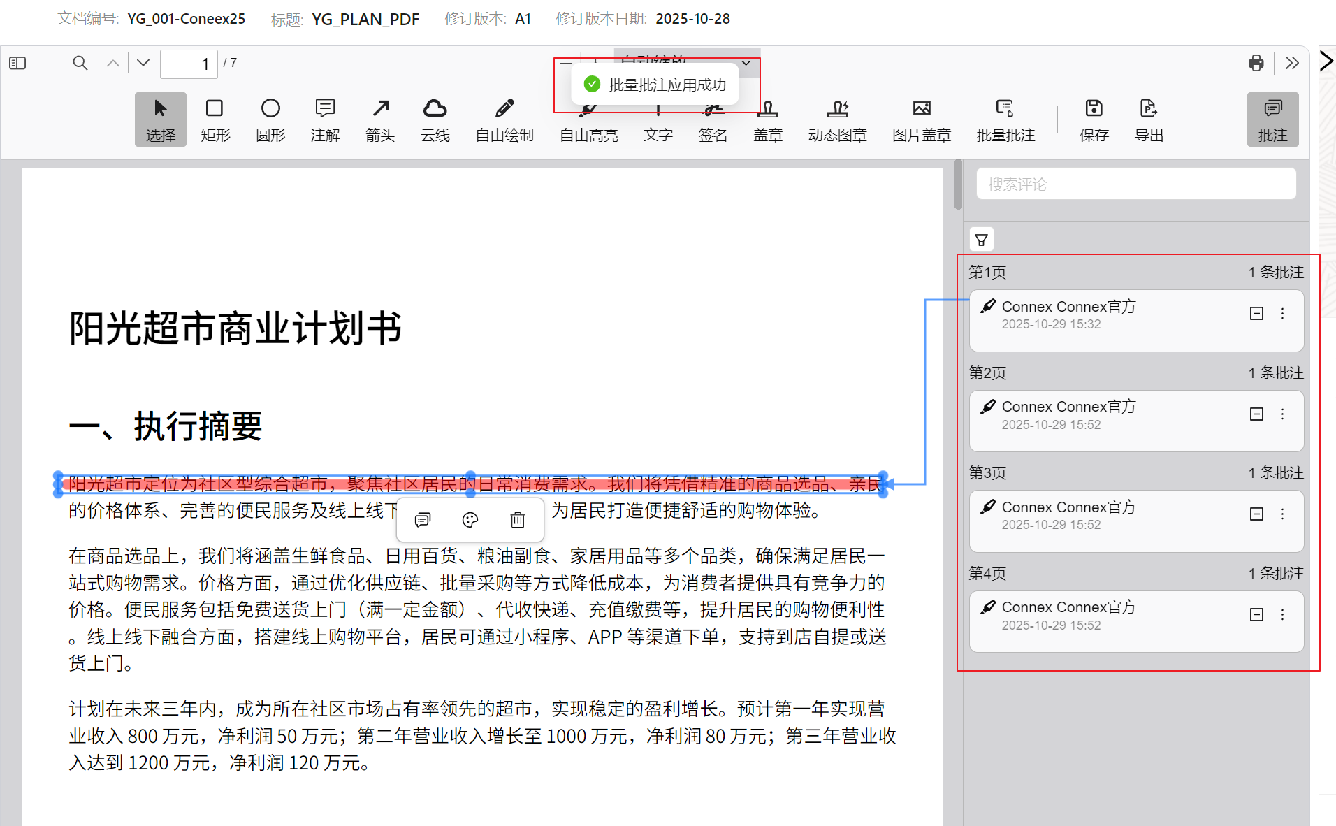 - 单击工具栏中的批量注释 。