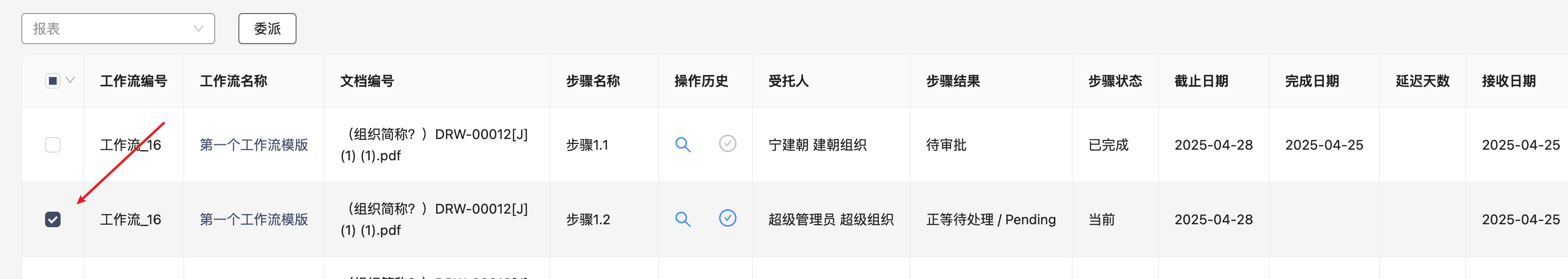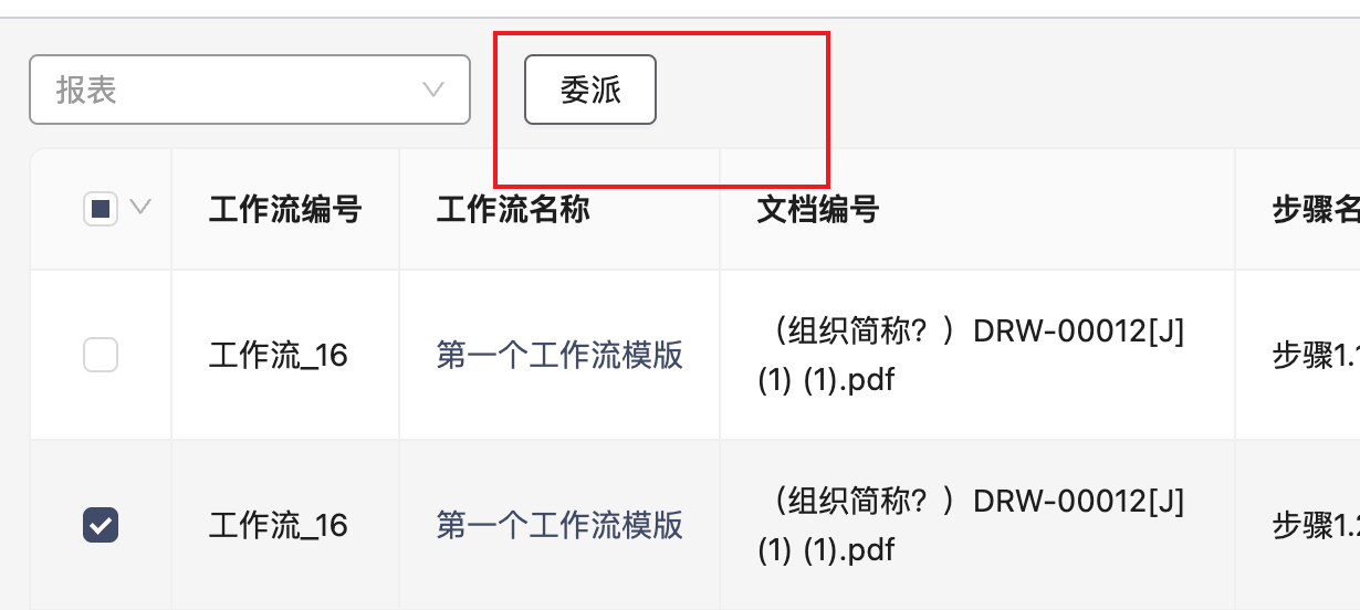 选中您要委派的每份文档的复选框。