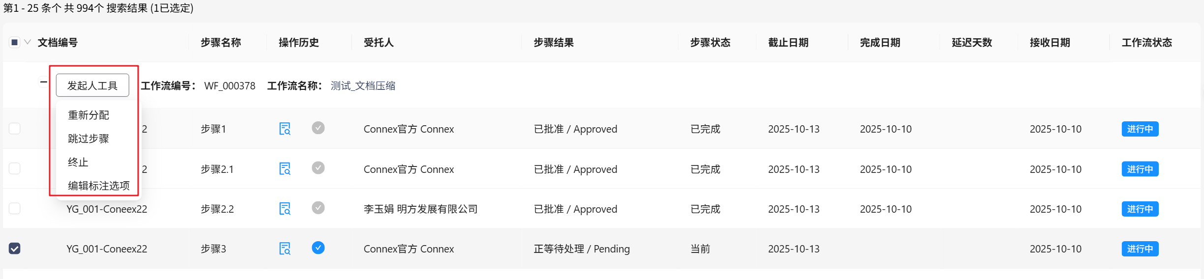 如果启动了工作流,则可以使用发起人工具来管理它。