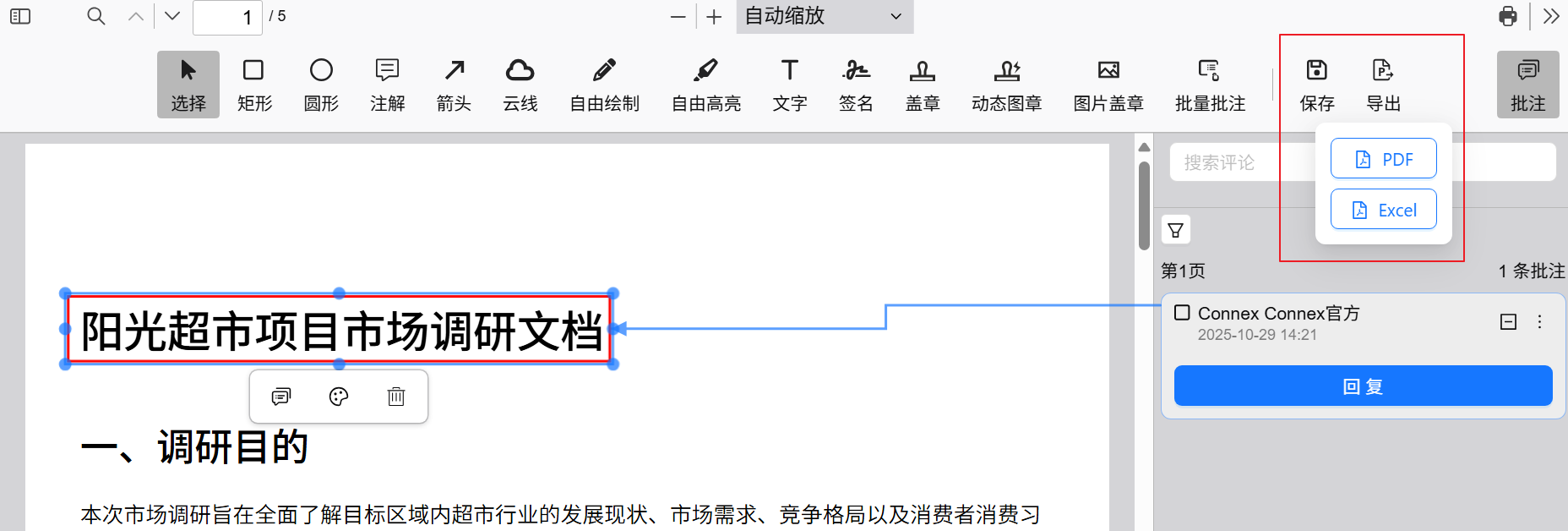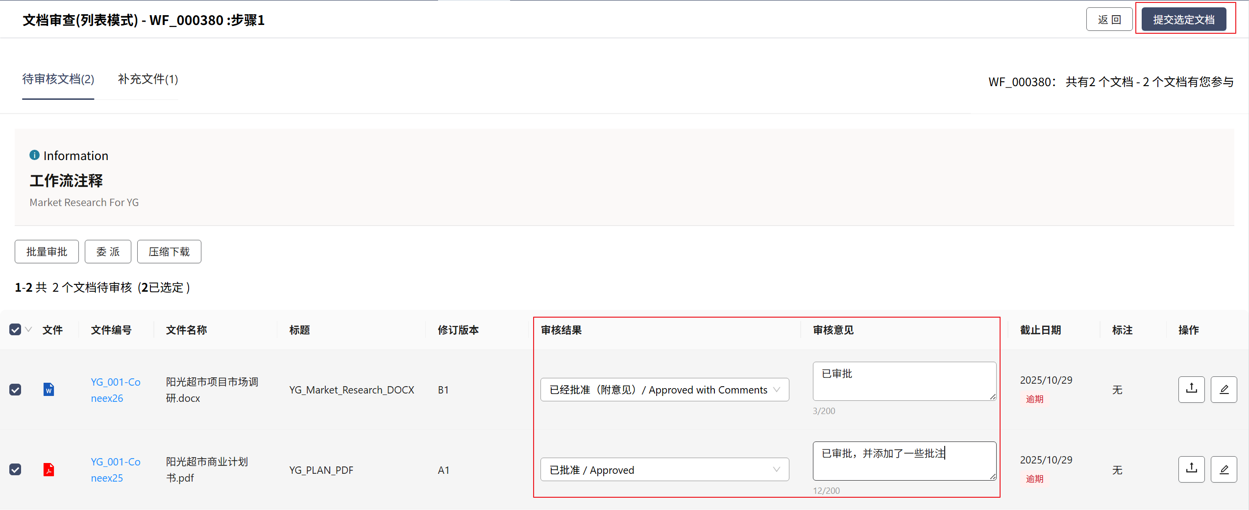 - 将您的 审批状态 和 批注/标记 添加到文档中。