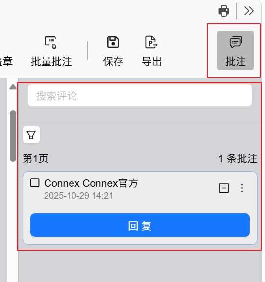 - 单击 切换批注面板 按钮以打开右侧的批注面板。 这允许您查看所有现有标记及其完整批注数据。