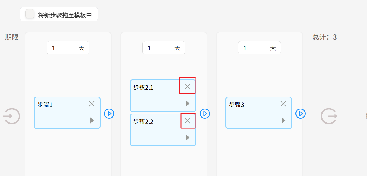 提示: 您无法在已激活的工作流模板中删除步骤。 在开始编辑工作流模板之前,请与您的组织管理员确认您是否有权限进行此操作。