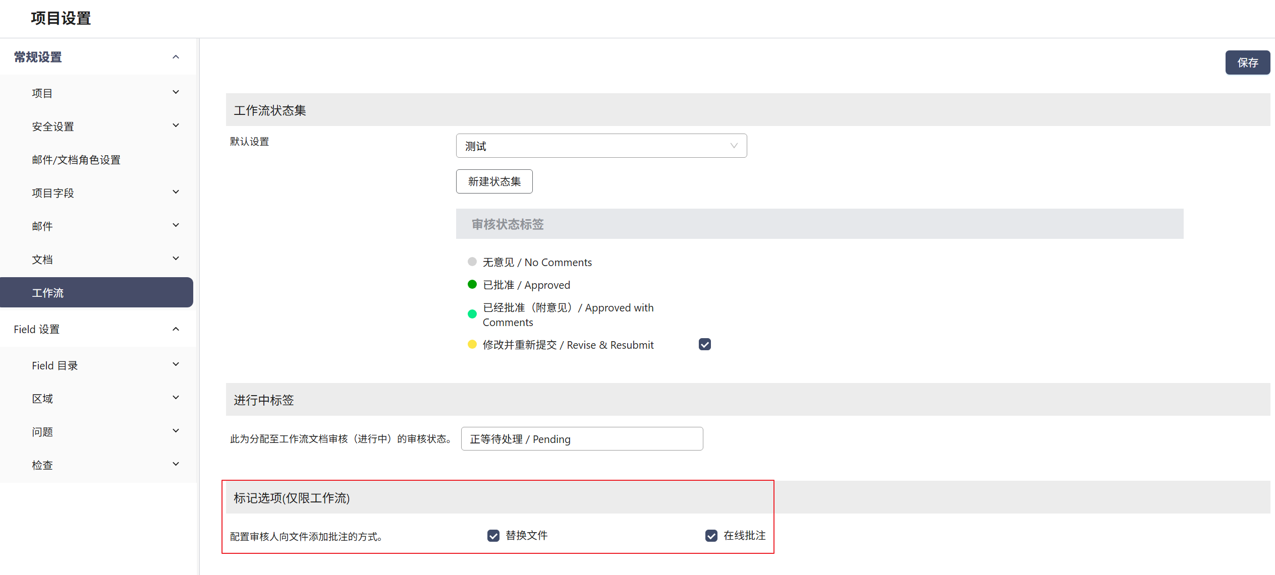 - 向下滚动到标记选项(仅限工作流)部分。默认情况下,这两个选项都处于选中状态。如果您不想使用某个选项,请取消选中该选项。